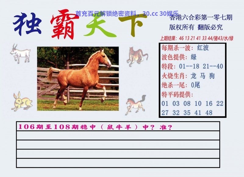 108期必中两波红波蓝波开:猪07准