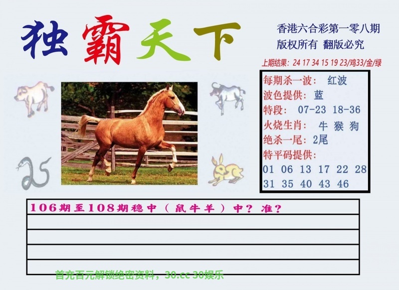106期:家野两肖家禽+蛇兔╣开:猪43准