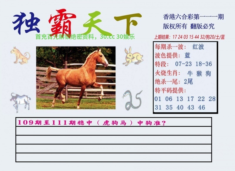 111期:家野两肖╠野兽+牛╣开:马12准
